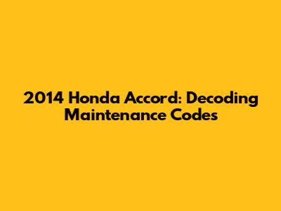 2014 Honda Accord: Decoding Maintenance Codes