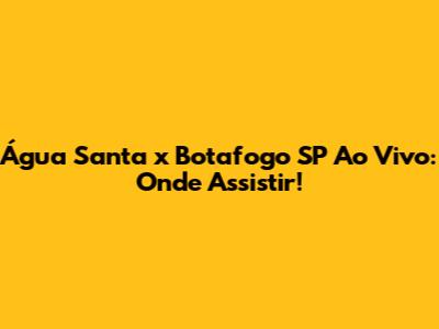 Água Santa X Botafogo SP Ao Vivo: Onde Assistir!