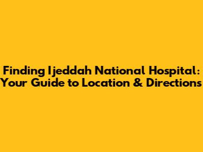Finding Ijeddah National Hospital: Location & Directions