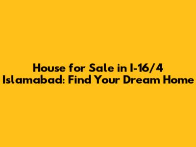 I-16/4 Islamabad House For Sale: Find Your Dream Home