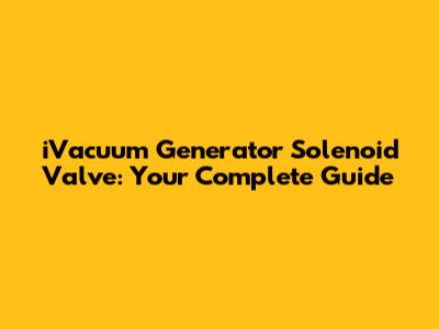 IVacuum Generator Solenoid Valve: A Comprehensive Guide