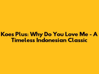 Hey guys! Let's dive into a song that's not just a tune, but a piece of Indonesian music history: "Why Do You Love Me" by the legendary Koes Plus. This song isn't just a catchy melody; it's a cultural touchstone that has resonated with generations. So, grab your headphones, and let’s explore what makes this song so special.