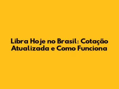 Libra Hoje No Brasil: Cotação Atualizada E Como Funciona