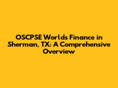 OSCPSE World's Finance In Sherman, TX: A Comprehensive Overview