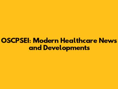 OSCPSEI: Modern Healthcare News And Developments
