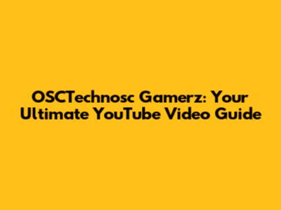 OSCTechnosc Gamerz: Your Ultimate YouTube Video Guide