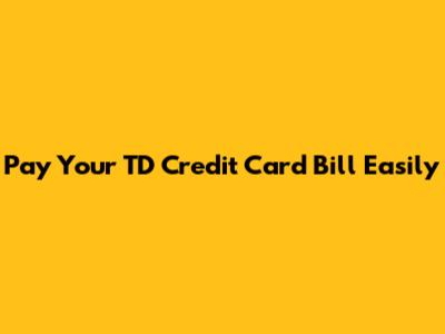 Pay Your TD Credit Card Bill Easily