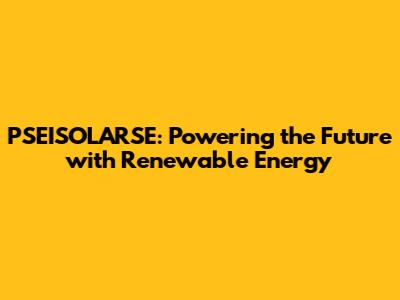 PSEISOLARSE: Powering The Future With Renewable Energy