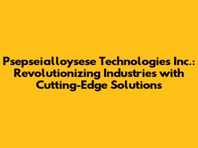 Hey everyone! Let's dive into the fascinating world of Psepseialloysese Technologies Inc. This company is making serious waves, and we're going to explore what makes them tick, their groundbreaking tech, and how they're shaping the future. Buckle up, because it's going to be a fun ride!