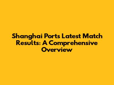 Shanghai Port's Latest Match Results: A Comprehensive Overview