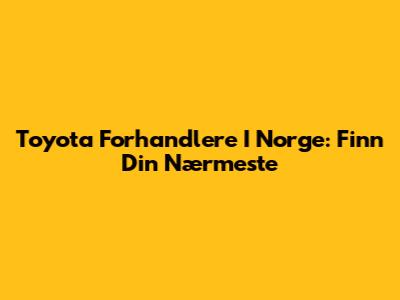 Toyota Forhandlere I Norge: Finn Din Nærmeste